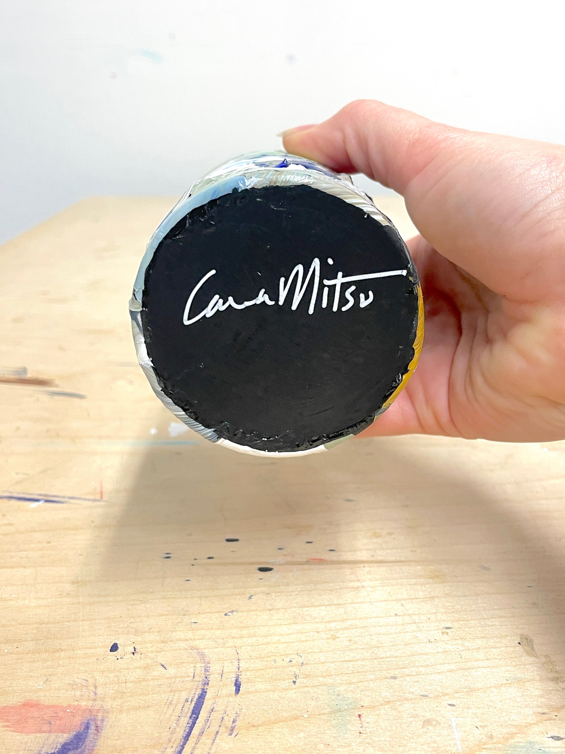 I started saving my acrylic paint scraps from my palettes and repurposing them in 2023. Experimenting with them has brought me so much joy in the studio and helps me repurpose what would otherwise be thrown in the trash.