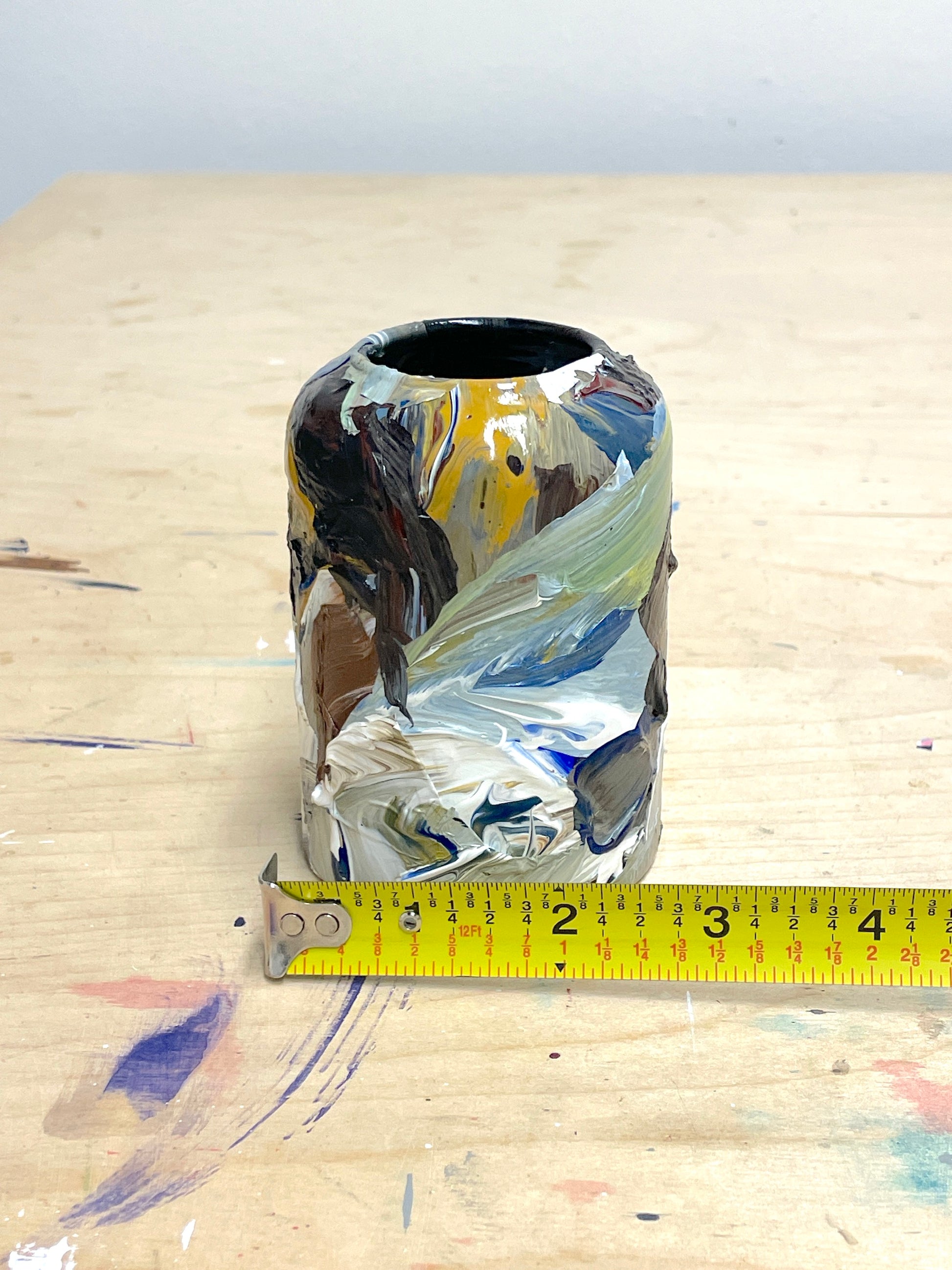 Behind the surface & under the paint, are written poems on the glass surface of the vase. These vases were used in my first solo exhibition in 2024, and I wanted to be able to reuse these vases from the display I created there. I knew I could repurpose them