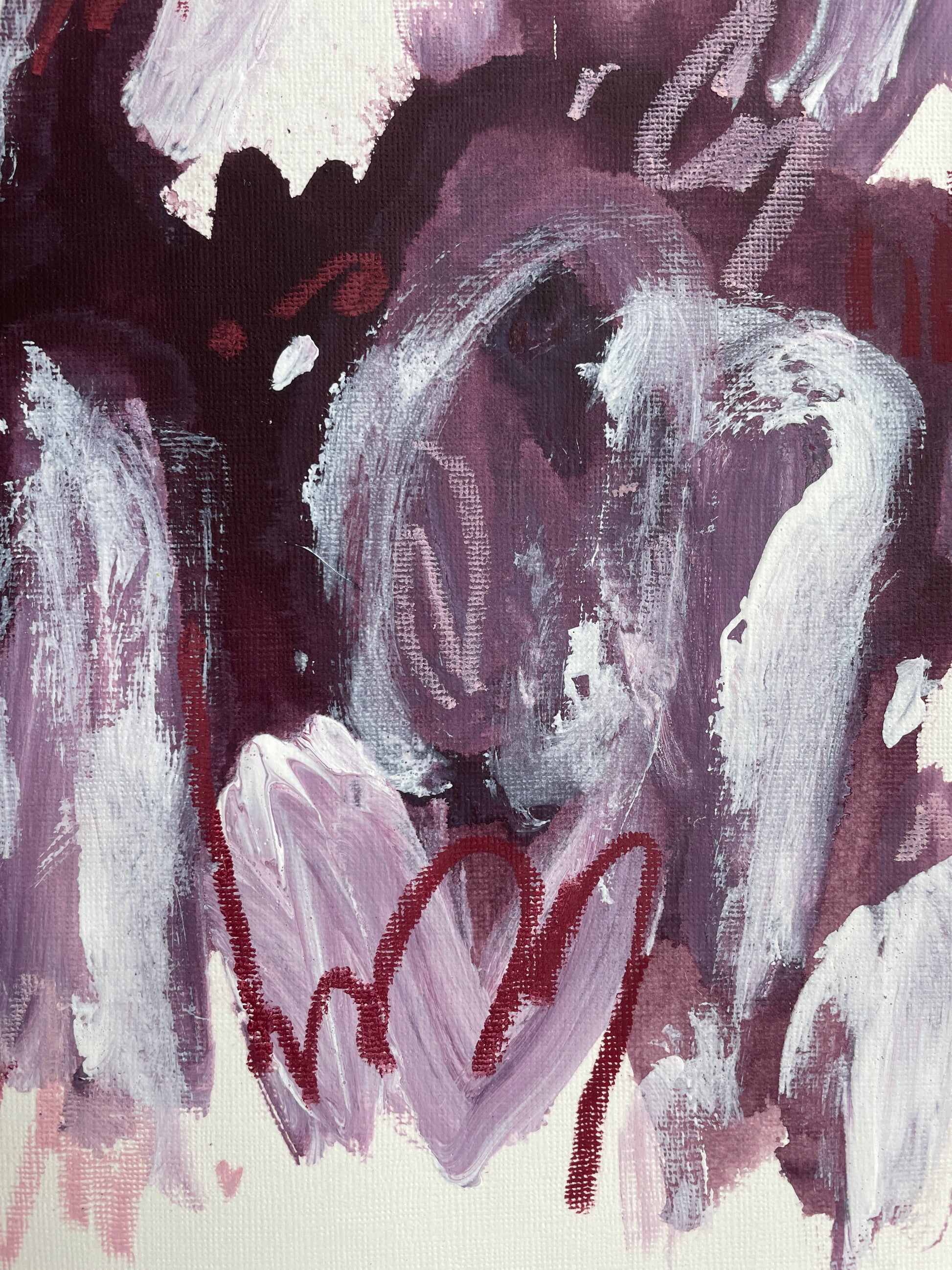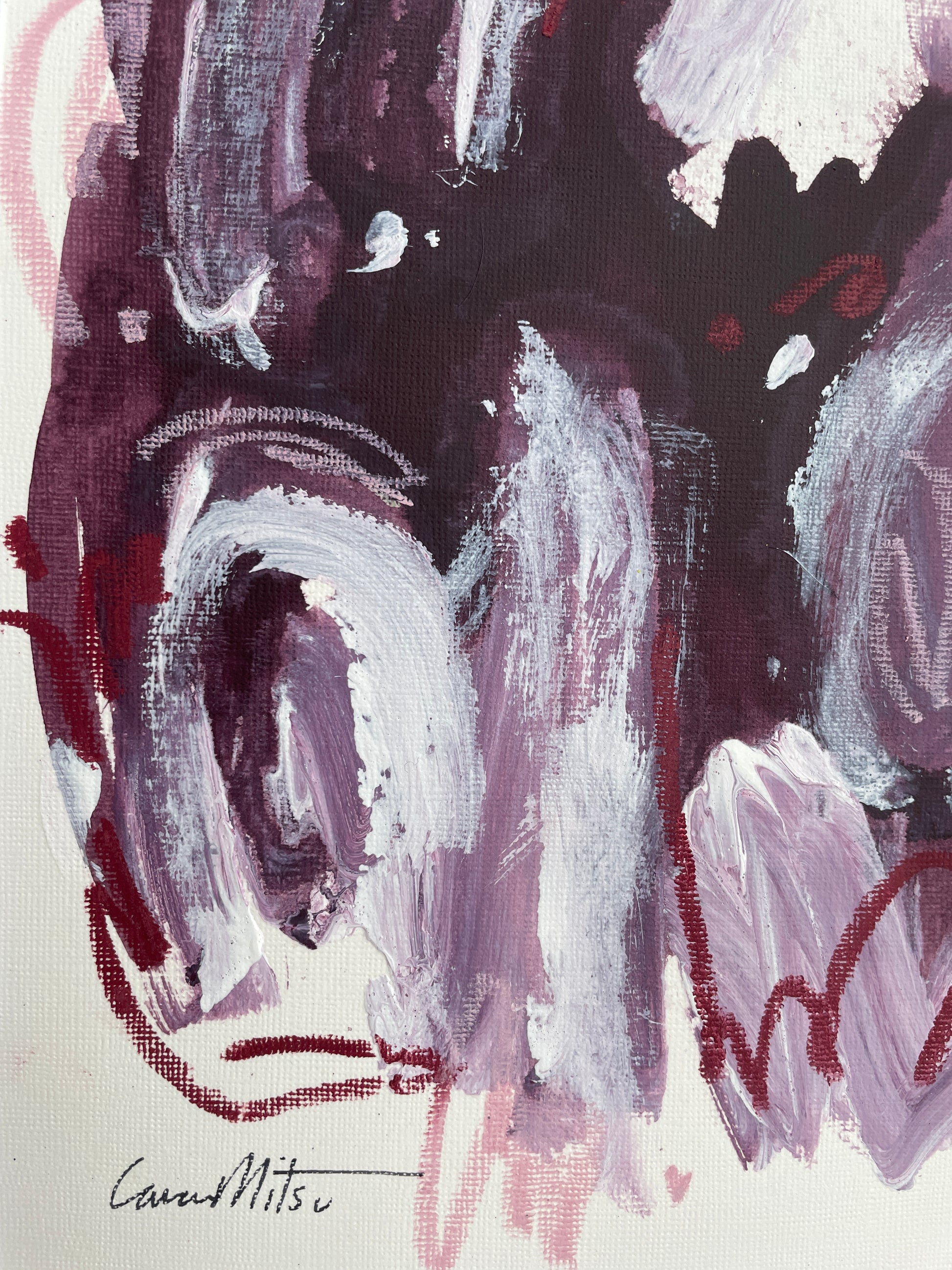 "Completely Enamored" is an intimate work that feels like a love that's aged like fine wine. This burgundy painting swept me off my feet before the paint even dried, like being swept up in the love that adds depth to your life. Maybe that love is for the person who has your heart. Maybe it's a deep love for yourself. No matter who it's for, let it sweep you off your feet.