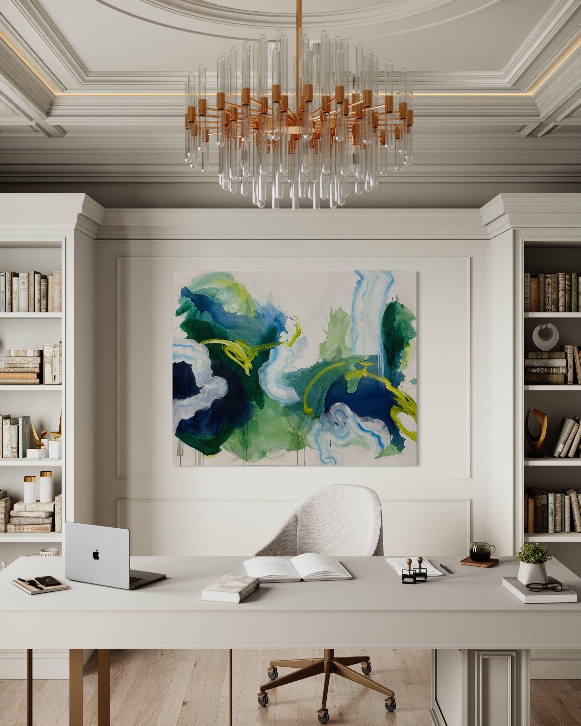 We should not fear the unknown but instead step boldly into it. This painting reminds you that you are the navigator of your own life, the architect of it, the designer of it. We create our own realities, moment by moment, as vibrant as we want them to be.