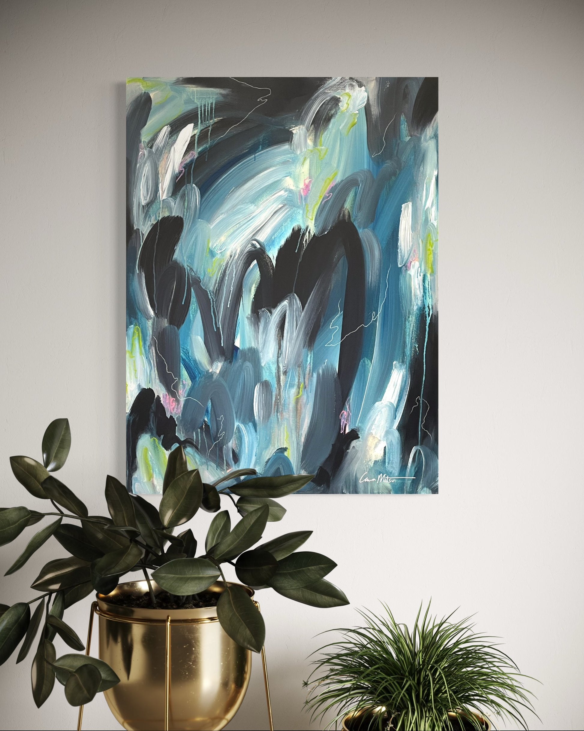 Signed on the front and back. Wired and ready to hang in your space.