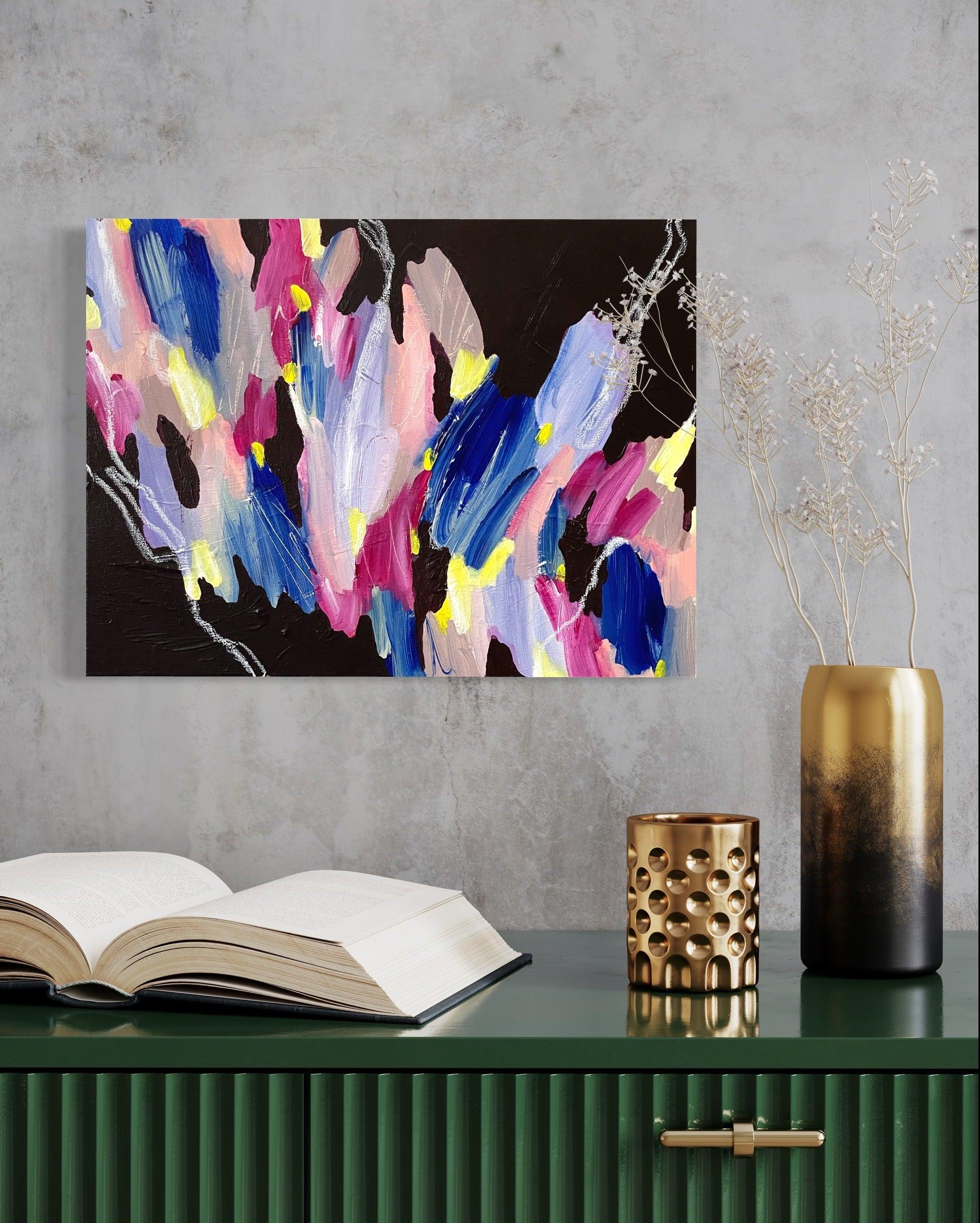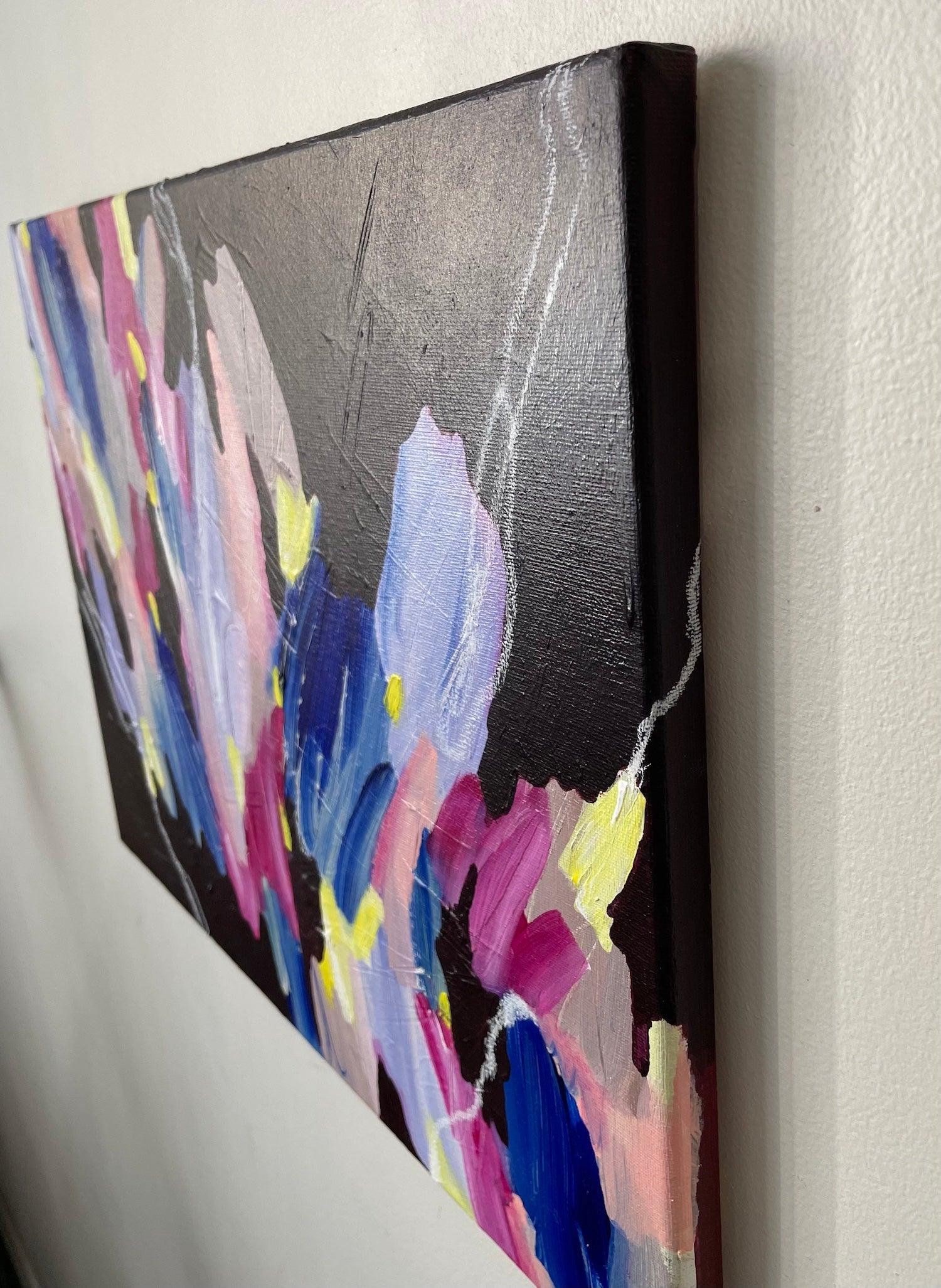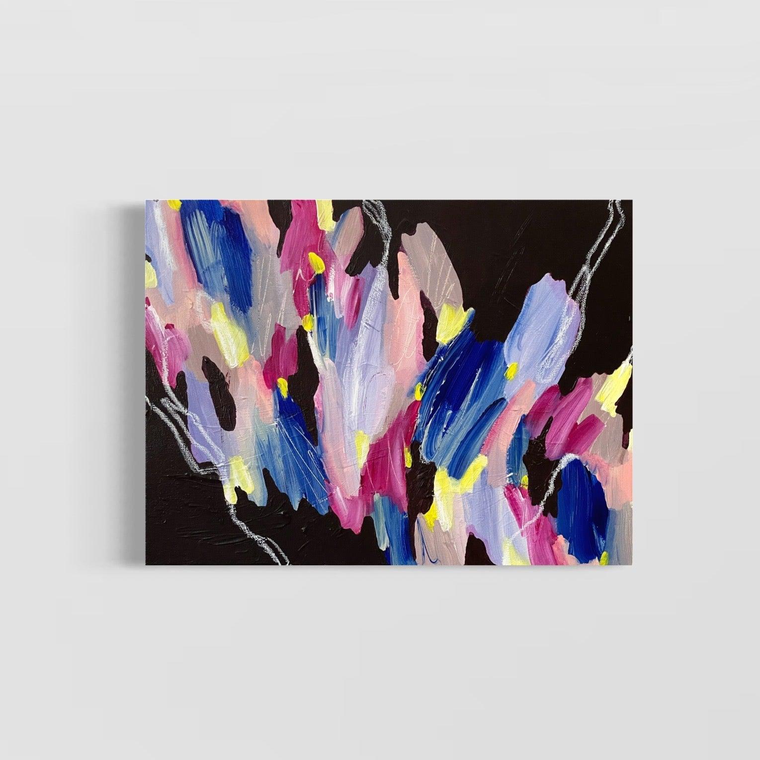I never think about anything when I'm creating a painting, but this one reminds me of fireflies. The bright yellow really shines through in this work as if it's "lit from within."