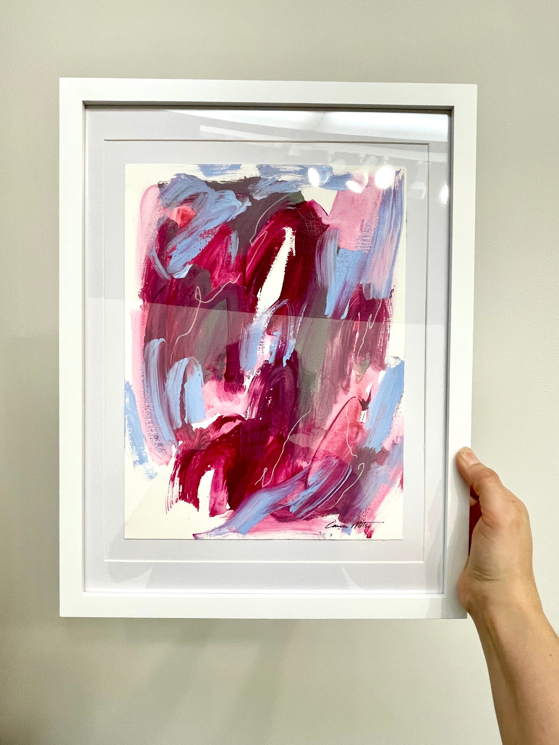 🖼️ This original abstract painting on paper comes framed in a white wooden 16x12 in frame.