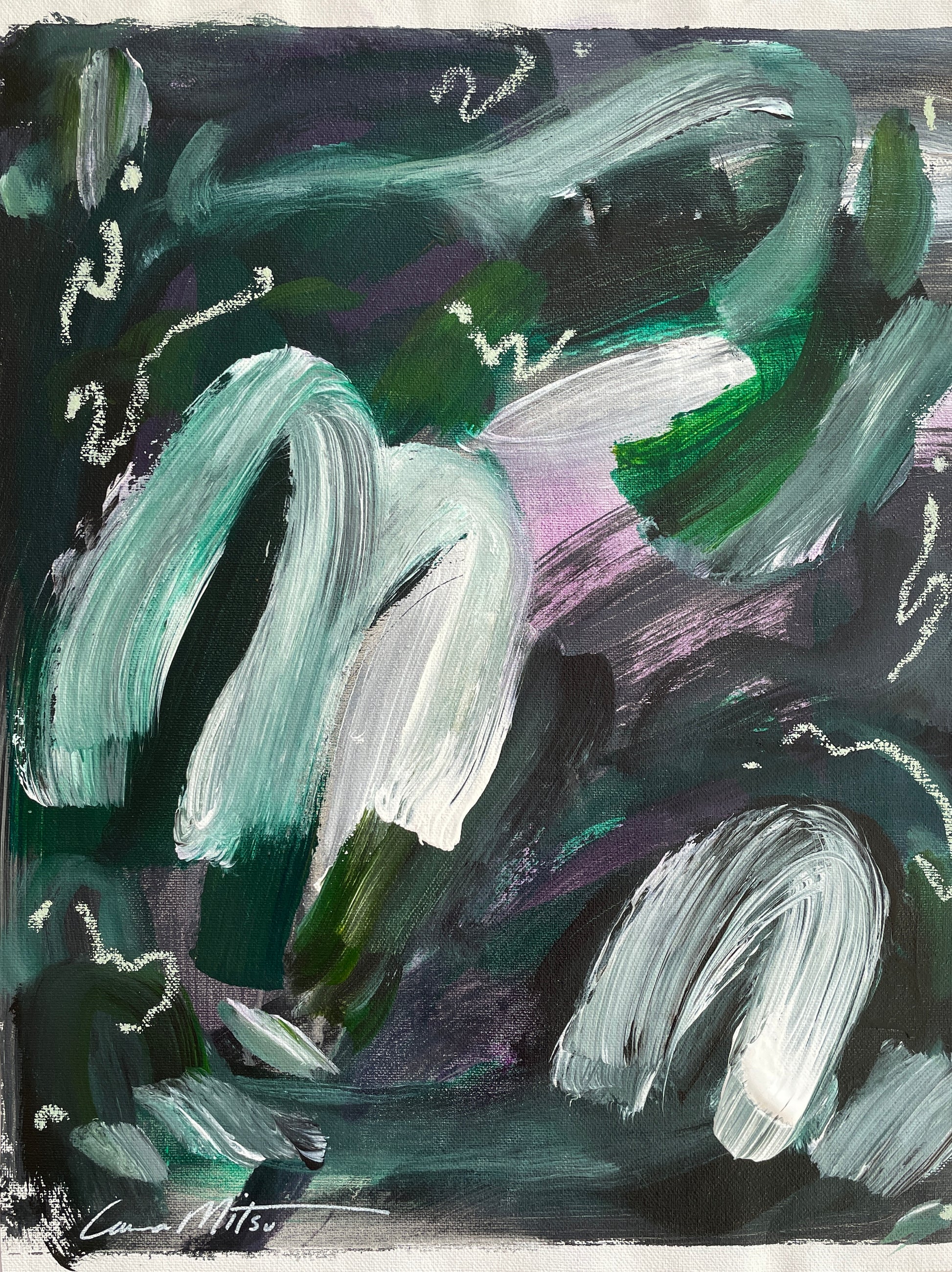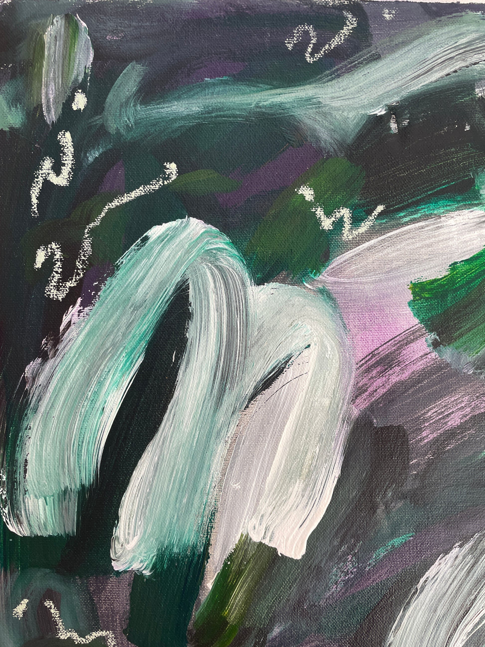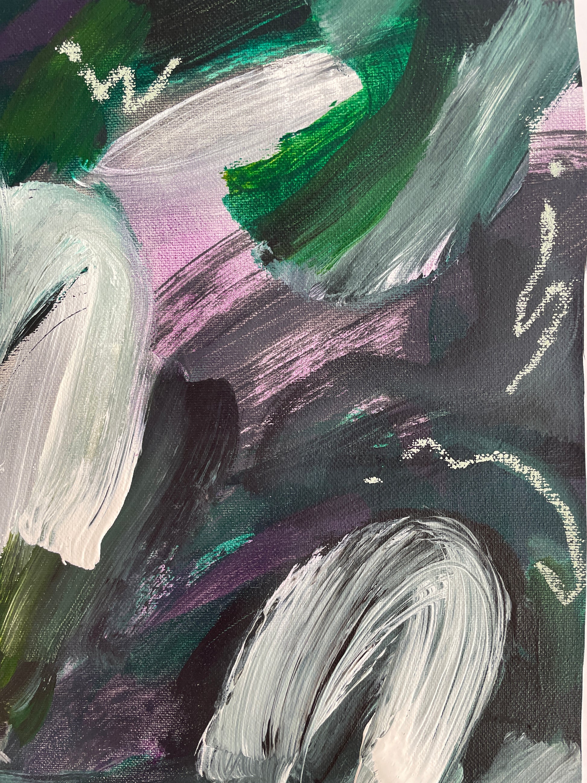 roughly 16x12 in — Acrylic and oil stick on unstretched canvas