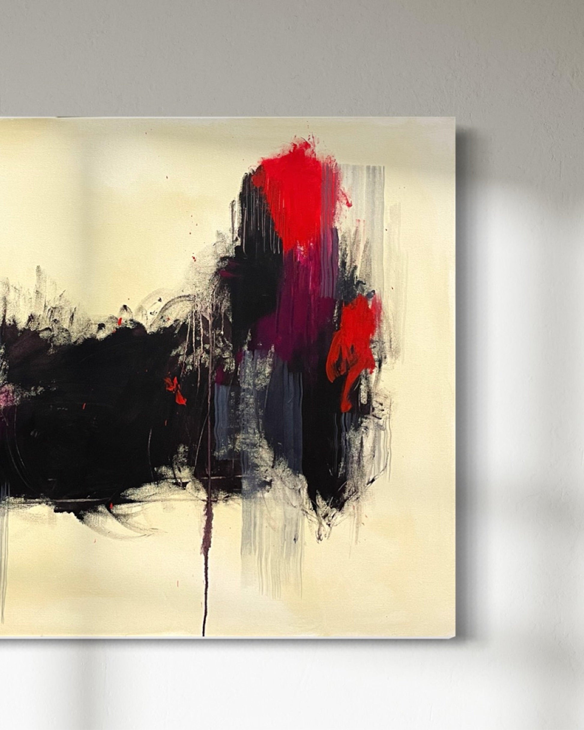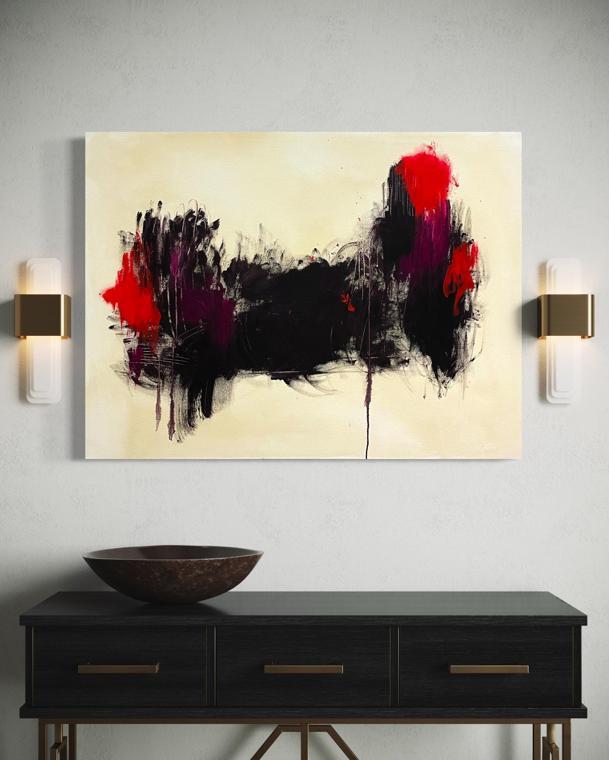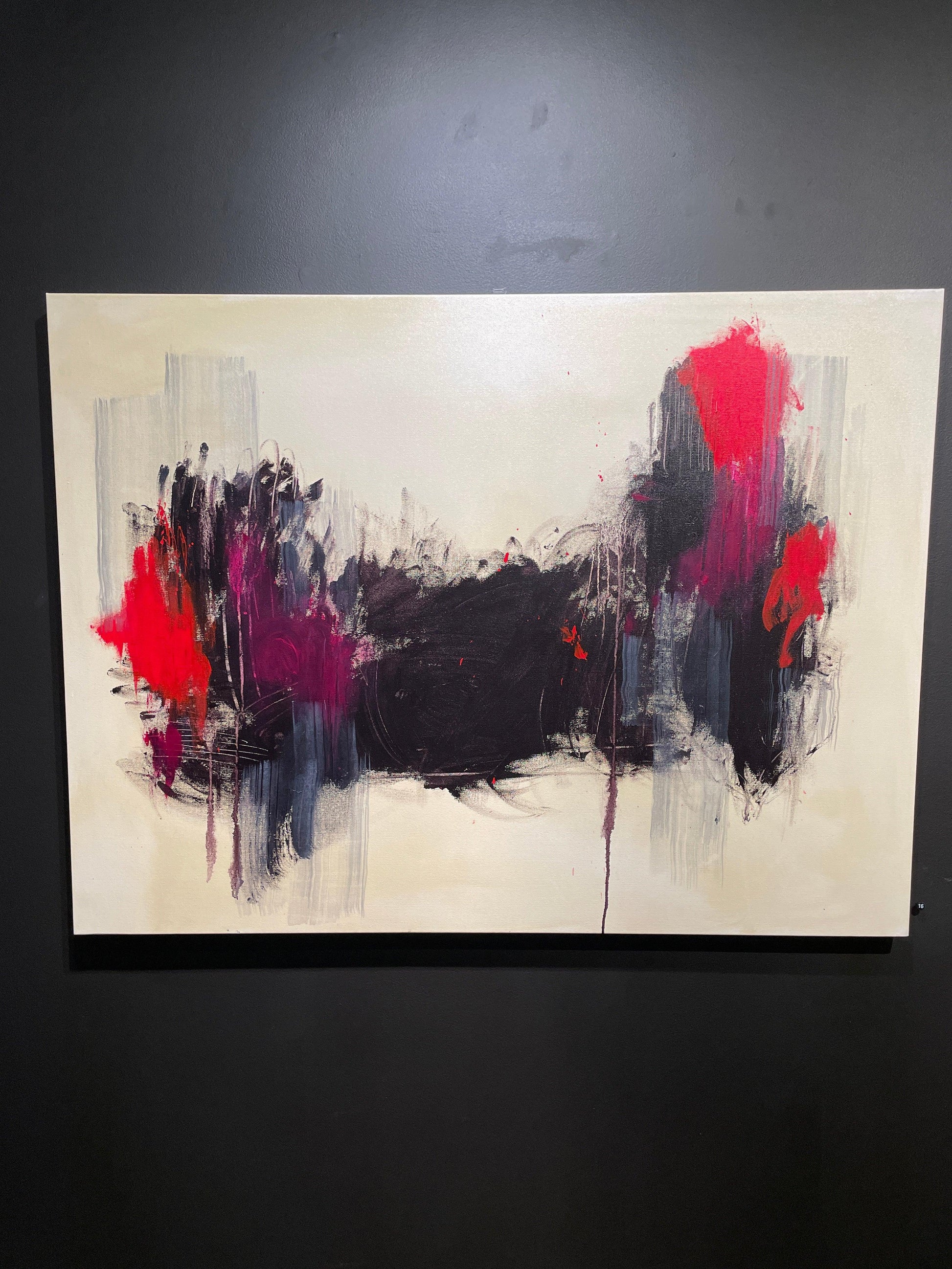 This original abstract painting is has a presence - during the show it shocked and awed. It was mentioned most frequently as a favorite. It's bold and romantic at the same time. It's a reminder that life is precious and it should be lived with passion and vibrancy.