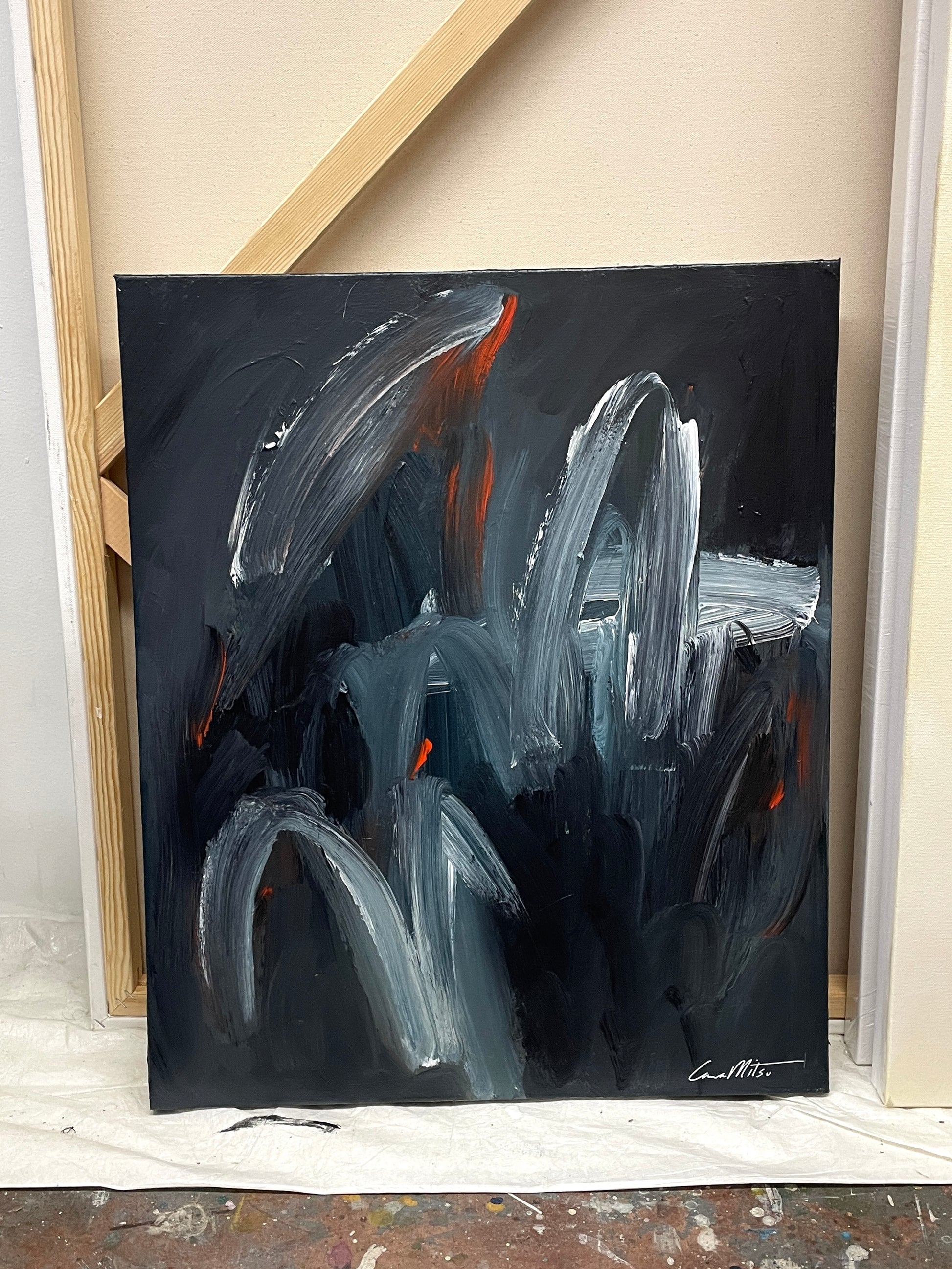 This painting came out of layers and layers of paint... the pressure built up, until finally, this final painting burst forth. The intensity, the fiery reds against the dark navy background, the explosive brushstrokes... there's no doubt that this painting is striking.