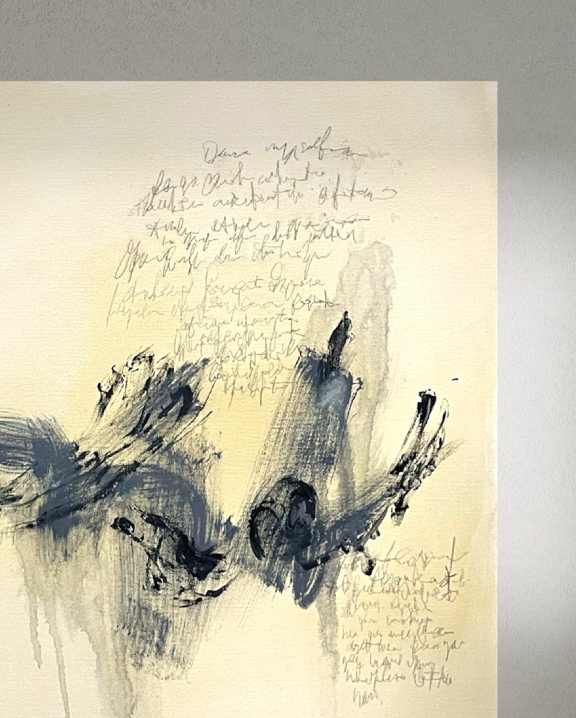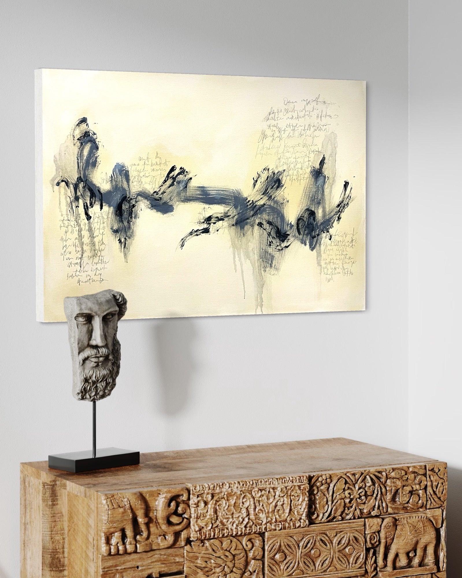 This painting is deceptively simple, but also has such emotional depth. The beige background like aging paper, the handwritten ode in graphite reminds us of the beauty of something handwritten in an age where everything is digital. There's something so personal about communicating by writing, an intimate form of bearing one's heart and soul to another by the page.