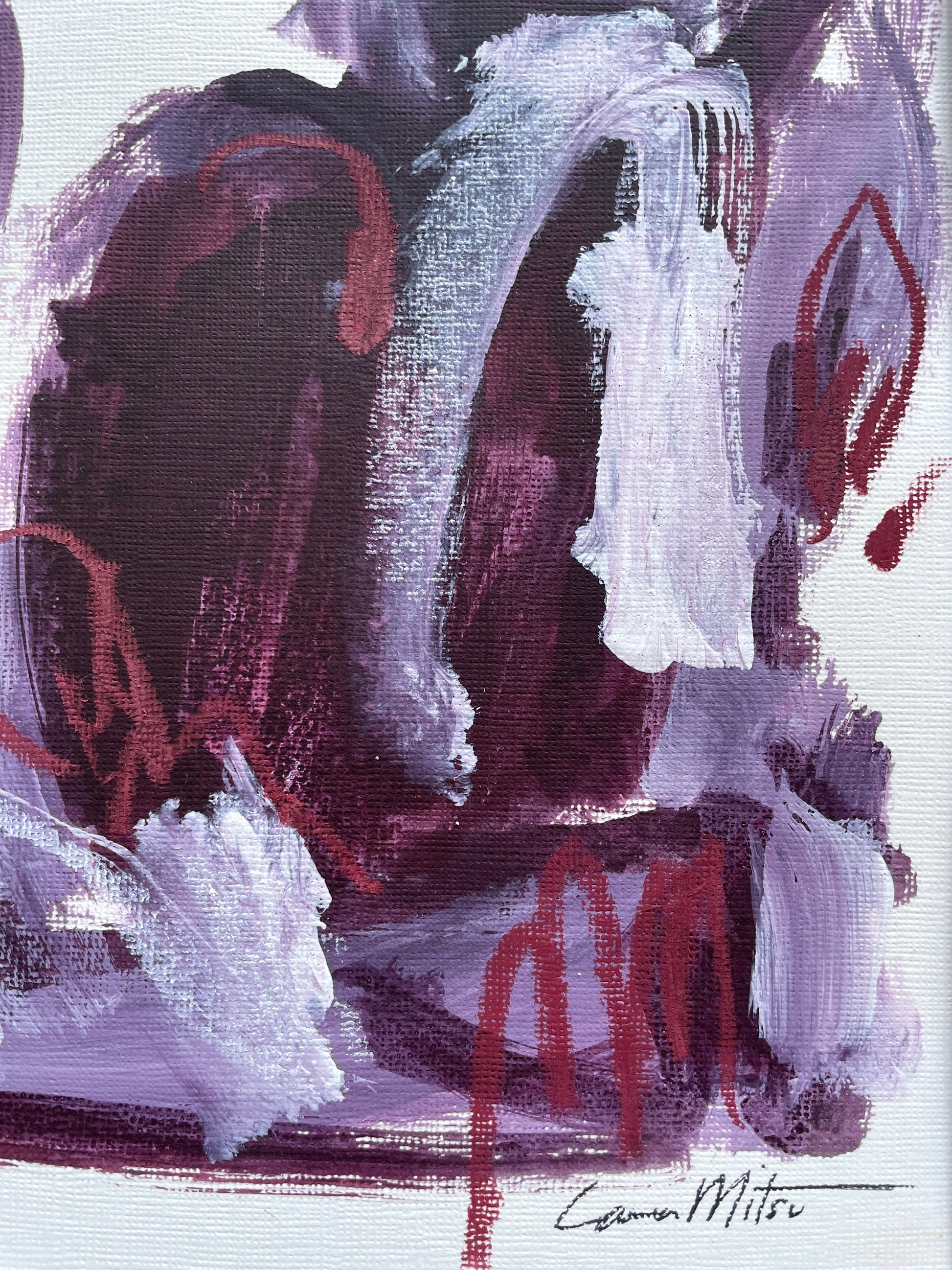 "There You Are" is an expressive painting that feels like the romantic rush of running into the arms of your beloved, letting out a big exhale as you feel at home in your love together.