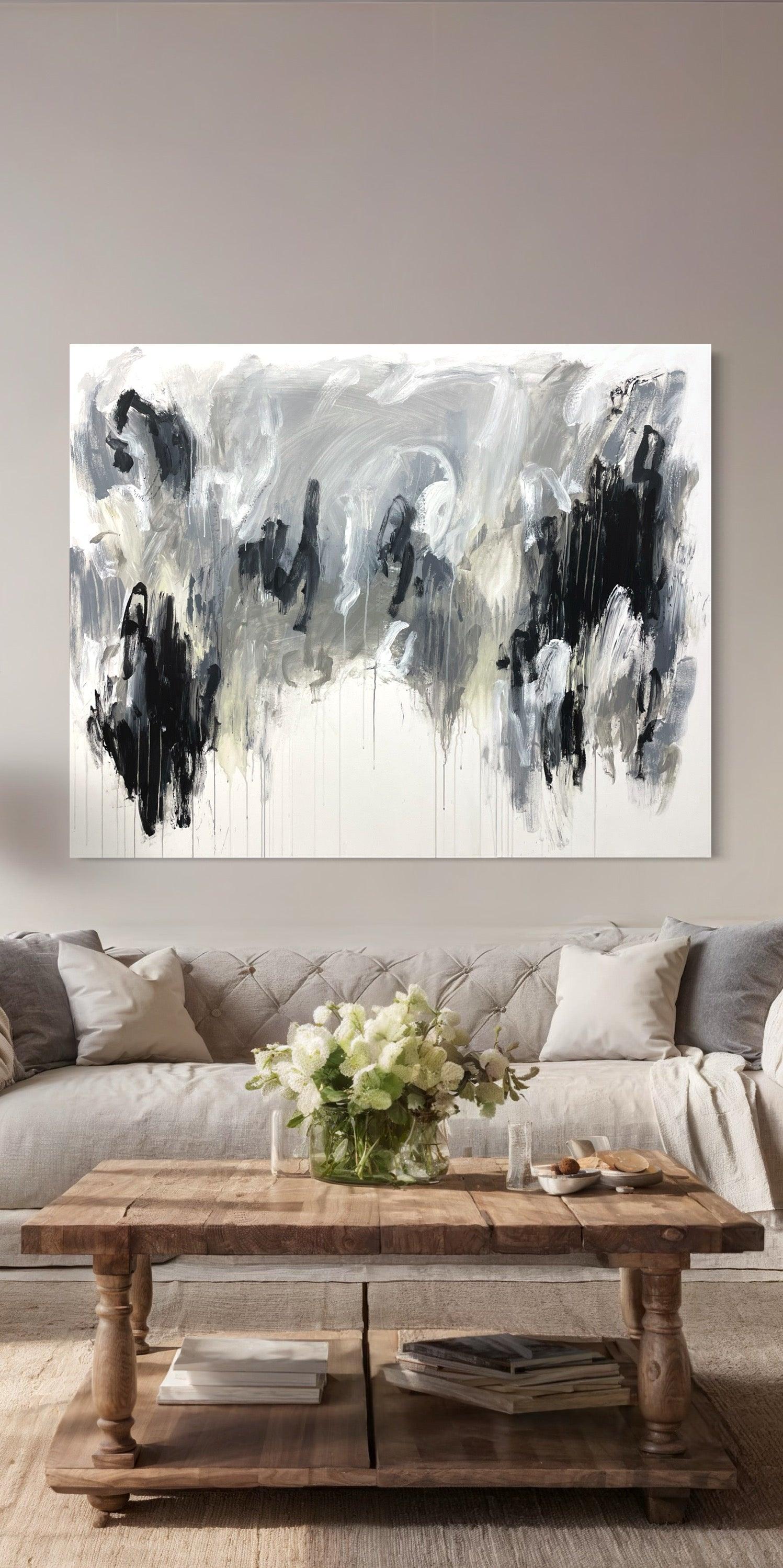 This original abstract painting is a unique statement piece - it feels bold and romantic. I painted this primarily with my hands, creating a strong bond between myself and this work of art. The brushstrokes and movement I created in this composition feel like being caught up in a whirlwind of love. This one is not for the faint of heart, but for a heart that is lasting and knows no bounds of time and space.